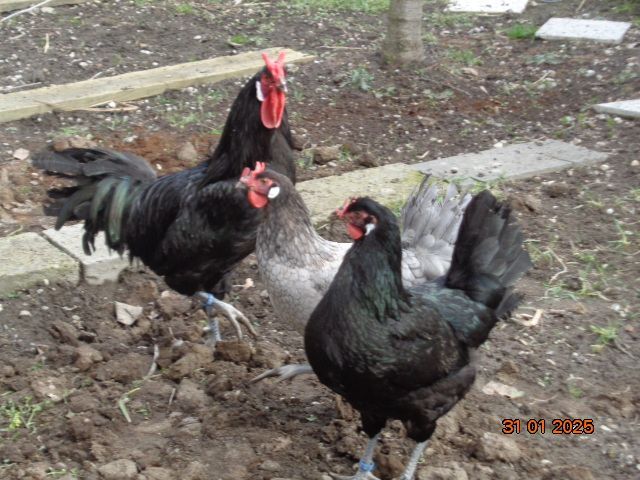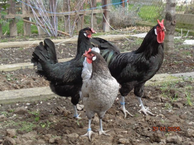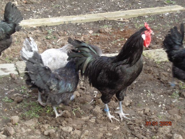 Mainly black and blue La Flèche. Thanks to a French import, I now also breed the rare coucou variety.