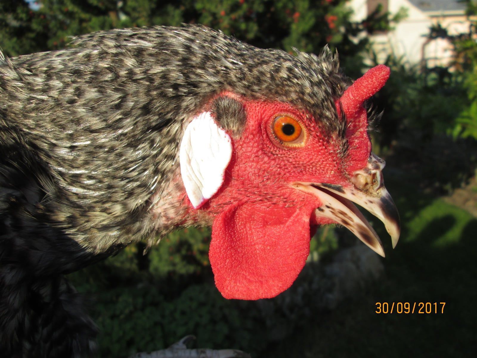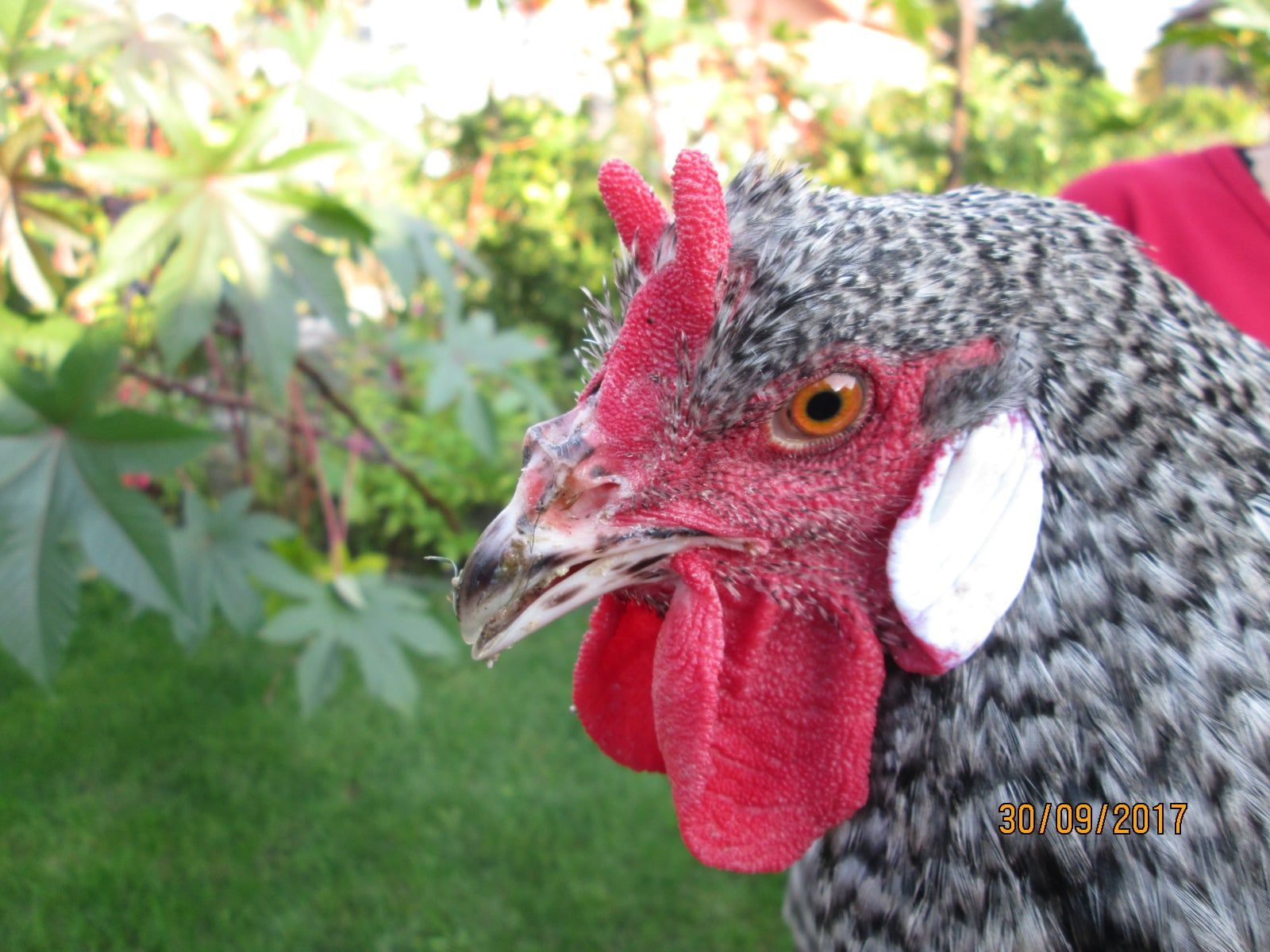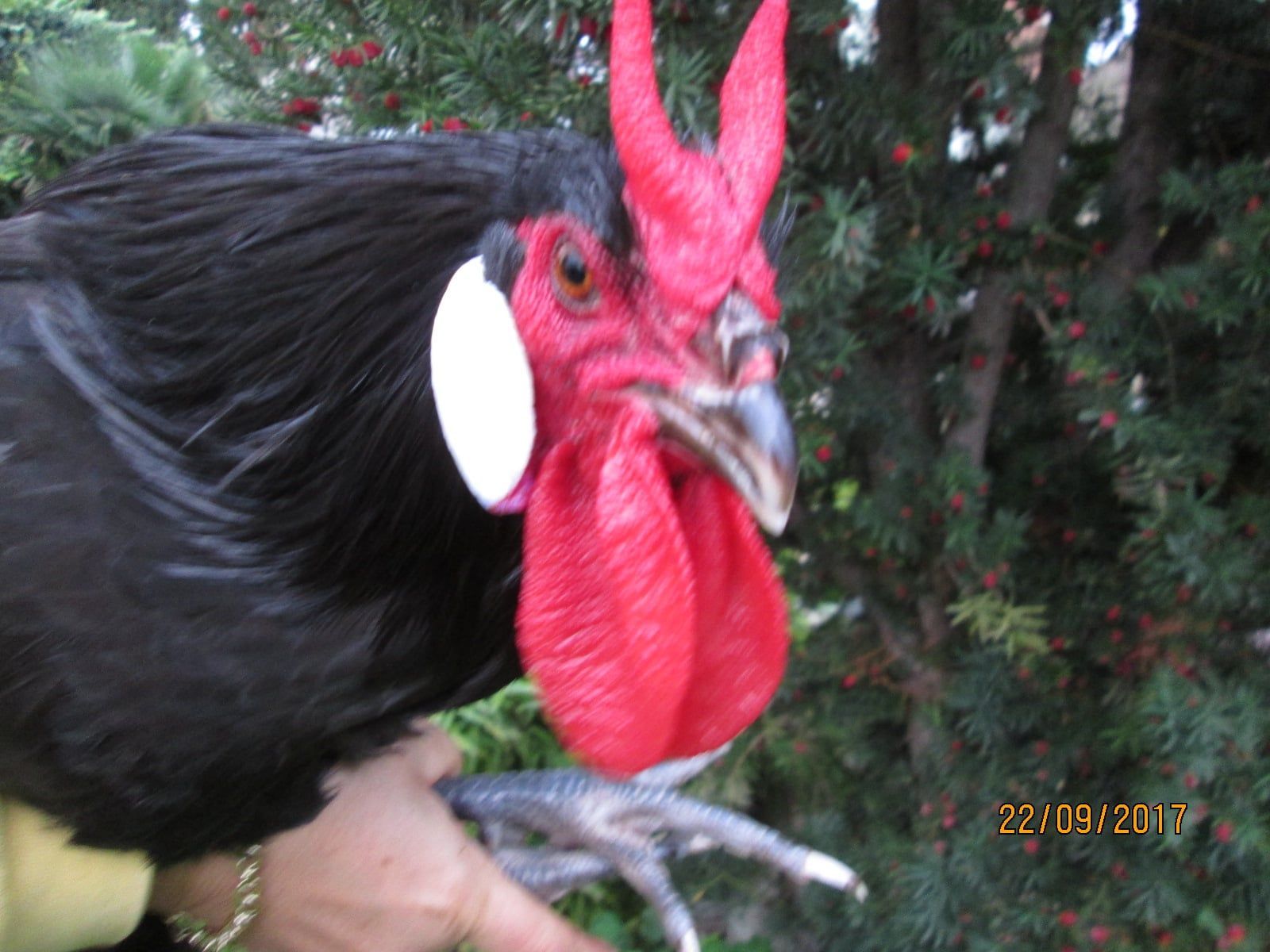 Their distinctive red V-shaped comb instead of a standard one, the black plumage with white earlobes – and that devilish look – fascinated me. I sometimes call them my "Lucifer's chickens."