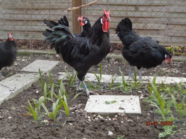 Mainly black and blue La Flèche. Thanks to a French import, I now also breed the rare coucou variety.